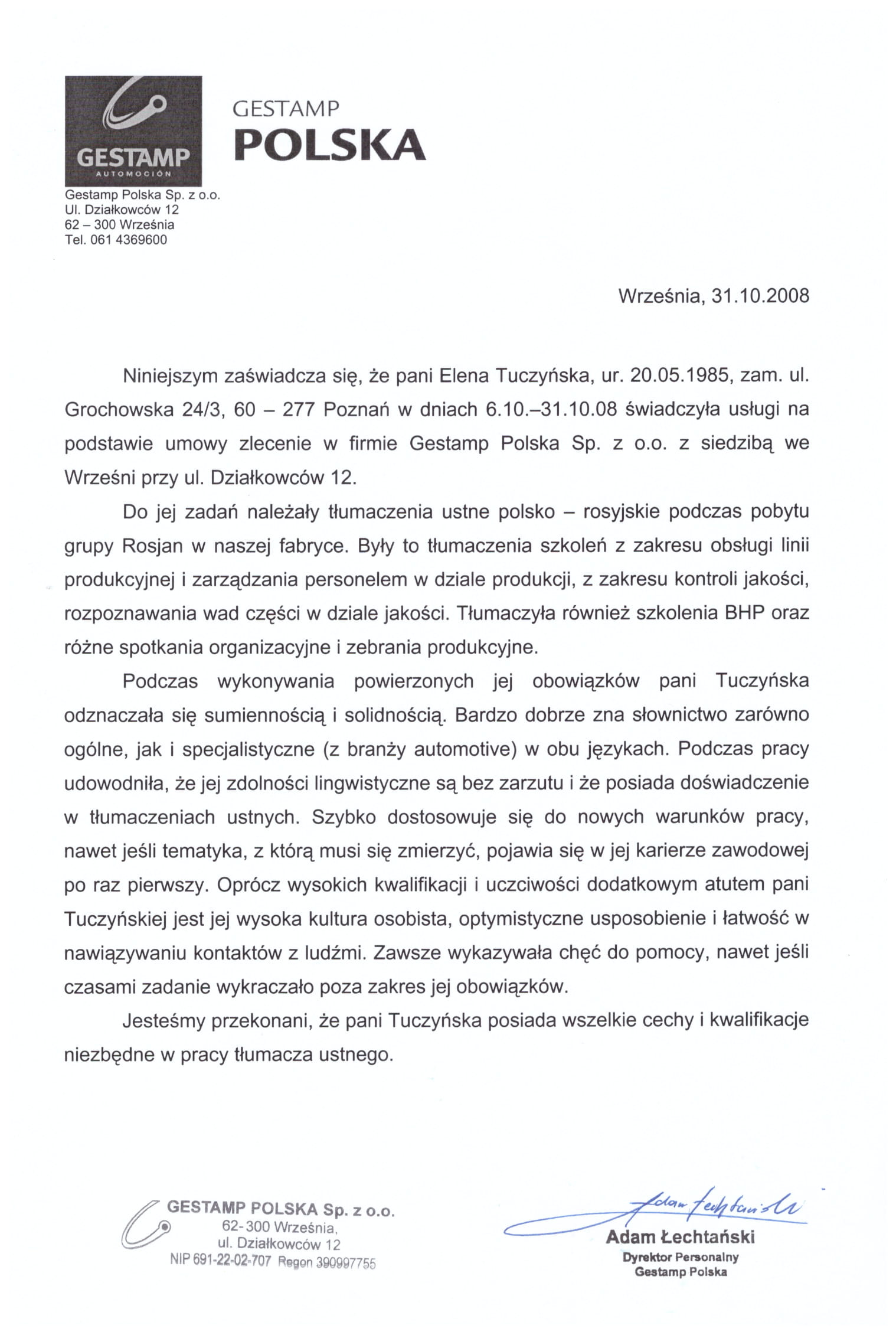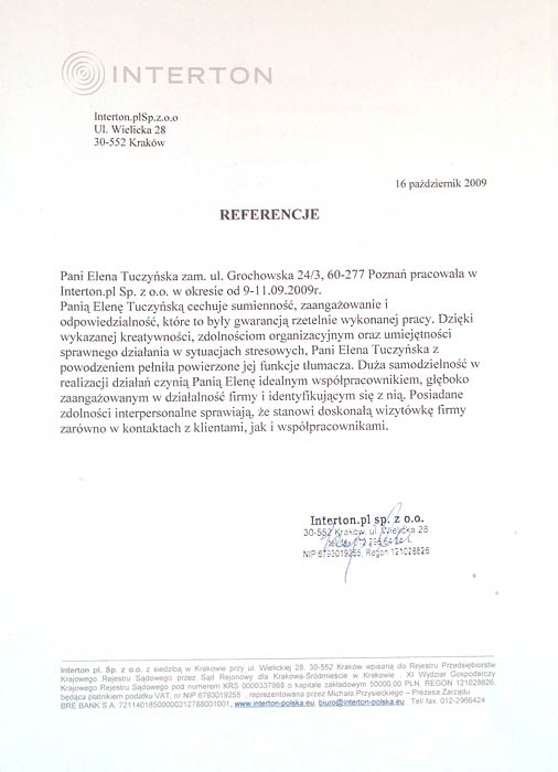 Posiadane referencje: